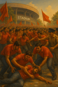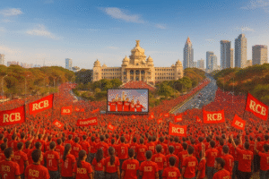 ಬೆಂಗಳೂರು ನಗರವೇ ಕೆಂಪಾಗಿ ಹೊಳೆಯುತ್ತಿತ್ತು. ಬೆಳಕು–ಸಂಗೀತ–ಜೈಕಾರ—ಎಲ್ಲವೂ ಒಂದೇ ಗಾಲಿಯಲ್ಲಿ ಹರಿಯುತ್ತಿತ್ತು. ಬ್ಯಾಟಿಂಗ್–ಬೌಲಿಂಗ್—ಎಲ್ಲವೂ ನೋಡಿದವರಿಗೆ ಉತ್ಸಾಹದ ಅಲೆ. ಸಾವಿರಾರು ಹೃದಯಗಳು ಒಂದೇ ರಾಗಕ್ಕೆ ತೂಗುತ್ತಿದ್ದವು. ಆದರೆ…