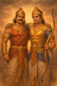 ದುರ್ಯೋಧನ ಮತ್ತು ಕರ್ಣರ ಸ್ನೇಹವು ಅಟ, ನಿಷ್ಠೆ ಮತ್ತು ಅಸಾಧಾರಣ ವಿಶ್ವಾಸದ ಪ್ರತೀಕವಾಗಿದೆ. ದುರ್ಯೋಧನನು ಕರ್ಣನ ಶಕ್ತಿ, ಸಾಮರ್ಥ್ಯ, ಧೈರ್ಯ ಮತ್ತು ಬುದ್ಧಿವಂತಿಕೆಯನ್ನು ಗುರುತಿಸಿ ಅವನನ್ನು ತನ್ನ ಅತ್ಯಂತ ಆತ್ಮೀಯ ಸ್ನೇಹಿತನಾಗಿ ಸ್ವೀಕರಿಸಿದನು. ಕರ್ಣನು ಸಹ ತನ್ನ ಸ್ನೇಹಕ್ಕಾಗಿ ಜೀವನದ ಕಠಿಣ ನಿರ್ಣಯಗಳಲ್ಲಿಯೂ ದುರ್ಯೋಧನನಿಗೆ ಬೆನ್ನೊಡ್ಡಲಿಲ್ಲ. ಅವರ ಸ್ನೇಹದಲ್ಲಿ ಪರಸ್ಪರ ನಿಷ್ಠೆ ಮತ್ತು ತ್ಯಾಗದ ಮಹತ್ವ ಸ್ಪಷ್ಟವಾಗಿ ಕಾಣುತ್ತದೆ.