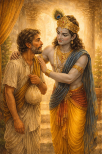 ಇದೇ ರೀತಿಯಾಗಿ, ಕೃಷ್ಣ ಮತ್ತು ಸುಧಾಮರ ಸ್ನೇಹವು ನಿಸ್ವಾರ್ಥತೆ ಮತ್ತು ಕರುಣೆಯ ಅತ್ಯುನ್ನತ ರೂಪವಾಗಿದೆ. ಸುಧಾಮನು ಎಷ್ಟೇ ಬಡವನಾಗಿದ್ದರೂ ಕೃಷ್ಣನು ಅವನನ್ನು ಸಮಾನ ದೃಷ್ಟಿಯಿಂದ ನೋಡಿದನು. ಅವನ ಕಷ್ಟಗಳನ್ನು ಅರಿತು, ಅವನ ಜೀವನವನ್ನು ಸುಧಾರಿಸಿದನು. ಇದು ಸ್ನೇಹವು ಸಂಪತ್ತಿನಿಂದ ಅಲ್ಲ, ಹೃದಯದ ಶುದ್ಧತೆಯಿಂದ ಹುಟ್ಟುತ್ತದೆ ಎಂಬುದನ್ನು ನಮಗೆ ಕಲಿಸುತ್ತದೆ.